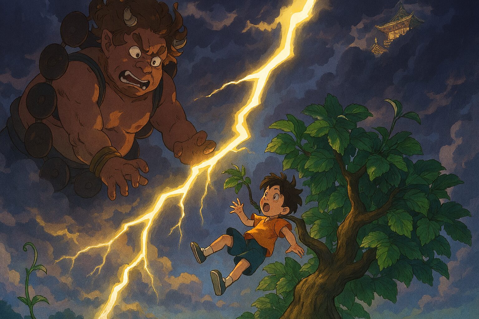 📖 昔話の核心:少年と雷神の奇妙な約束