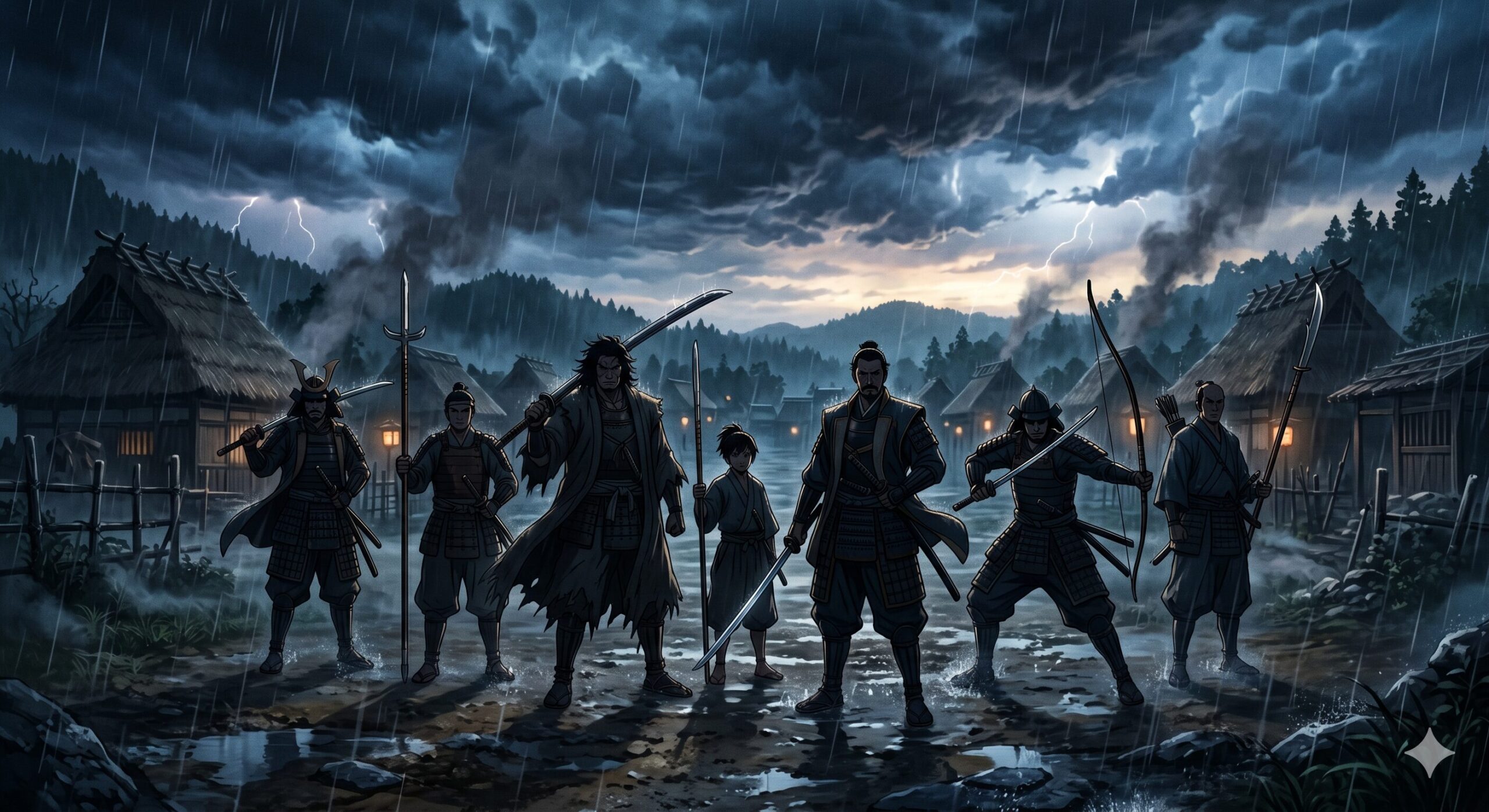 First is the concept of “self-sacrifice and justice without expectation of reward.” The only payment the destitute villagers could offer was white rice. In a battle devoid of glory or financial gain, these samurai chose to risk their lives to protect the weak. This embodies the ultimate aesthetic of Bushido—the spirit of “Gi” (righteousness or justice) that transcends mere calculation of loss and gain.