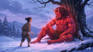 Discover the Japanese folktale "The Power Received from the Oni." A story about a woodcutter, a red ogre, and the heavy price of supernatural strength. Explore Japanese culture and morality.