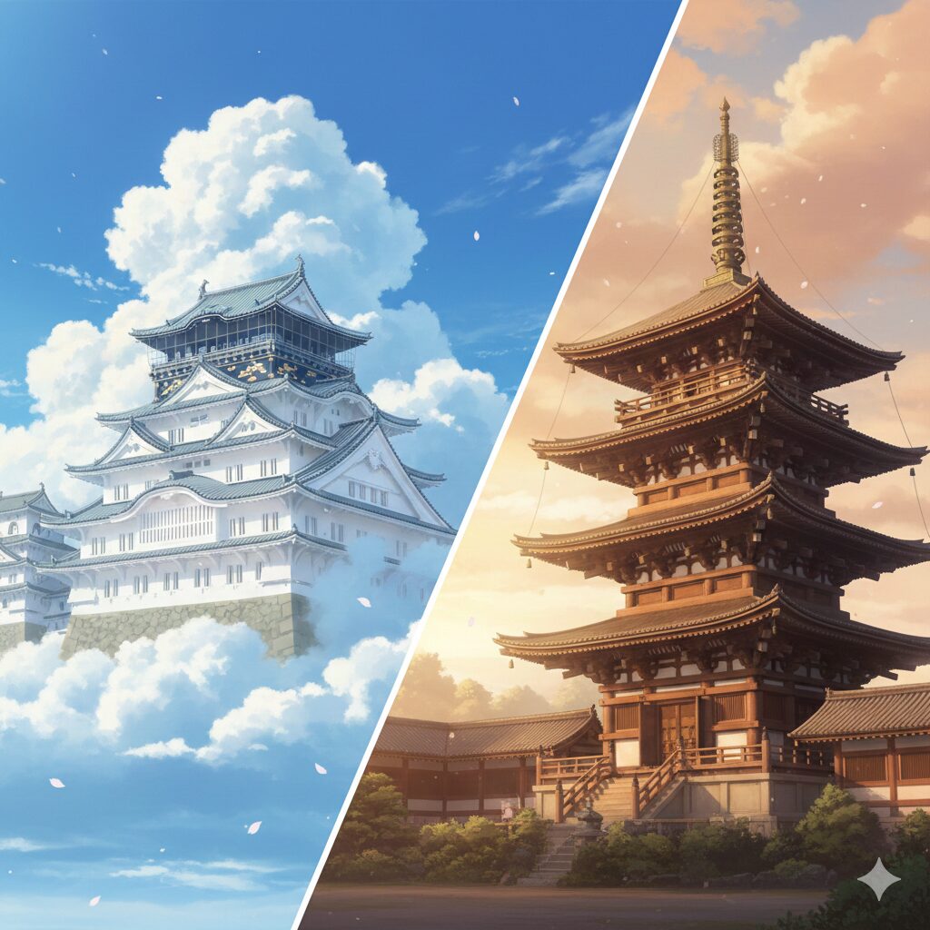 この記事を読んでいるあなたに問いかけたいことがあります。もしあなたが日本を訪れ、たった一箇所だけしか行けないとしたら、圧倒的な白さで空を突く「姫路城」を選びますか?それとも、木の香りと千年の静寂に包まれた「法隆寺」を選びますか?