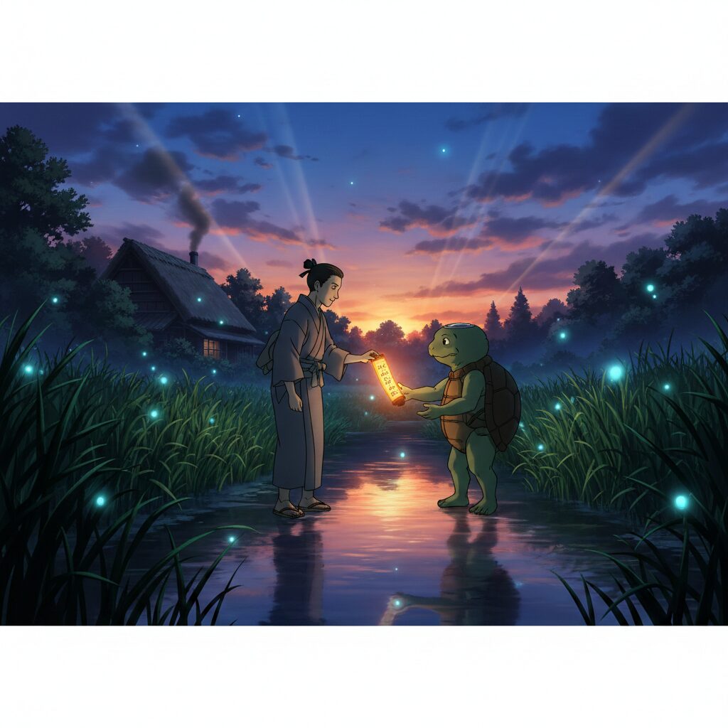 Interesting is the depiction of the Kappa “reattaching” its arm. In reality, traditional Japanese medicine (such as Judo therapy) and Kampo (Chinese medicine adapted in Japan) possessed deep knowledge regarding bruises and fractures. The medicine the Kappa allegedly taught is likely a personification of the local wisdom regarding riparian medicinal herbs, passed down through the guise of a Yokai legend.