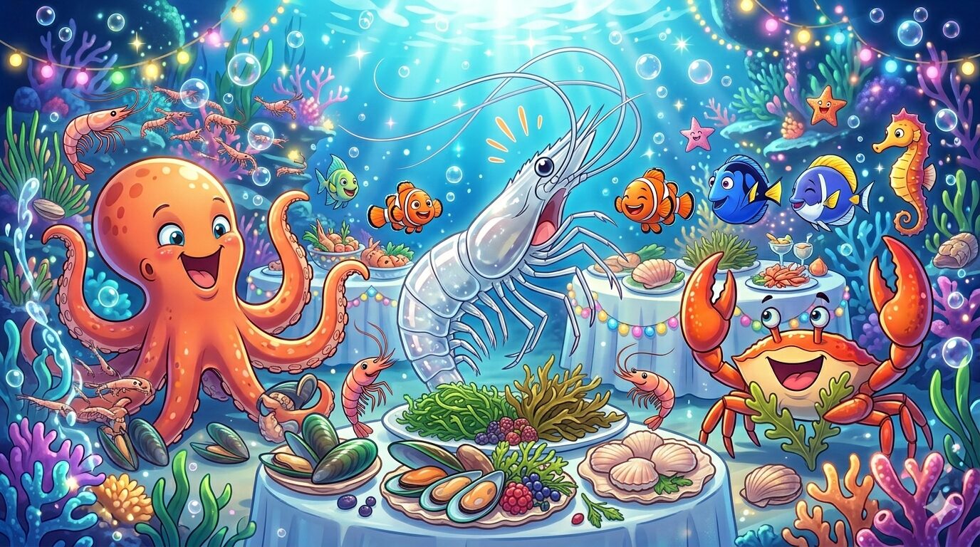 もしあなたがこのエビだったなら、自分の真っ直ぐな体をどのように使ったでしょうか。他の生き物たちと一緒に、その違いを楽しみながら宴会を過ごすことはできたでしょうか。この物語は、自分自身の日常の振る舞いを振り返るための鏡でもあります。ぜひ、あなたの考えを聞かせてください。