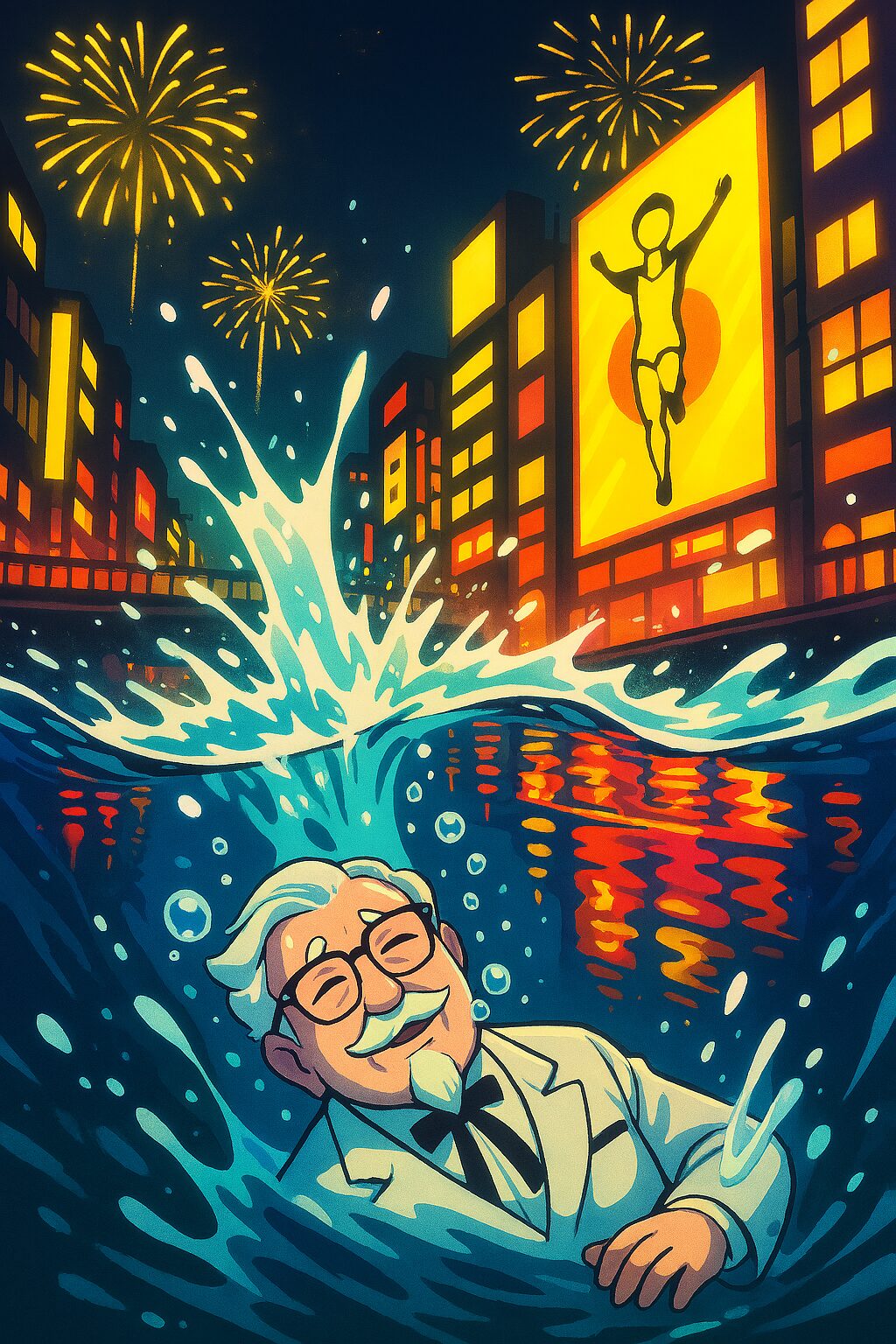 Of course, Dotonbori was under heavy police security in 2023, and many fans still dived into the river. However, KFC had wisely “evacuated” the Colonel statue, ensuring the mistake of 38 years ago was not repeated.
