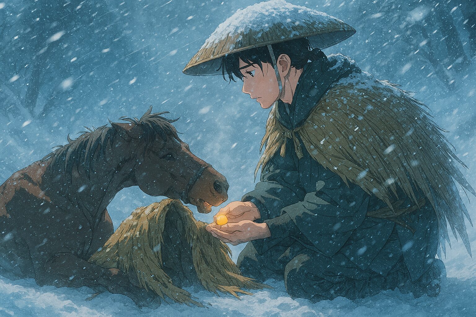 旅人馬(たびびとうま):吹雪の峠と、見えざる恩返し