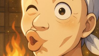 Discover the Japanese folktale of Hiotoko (Hyottoko), the hilarious mask that became the God of the Hearth. Explore the culture of Kamado worship, the power of laughter, and the lesson of greed vs. honesty in Japanese tradition.