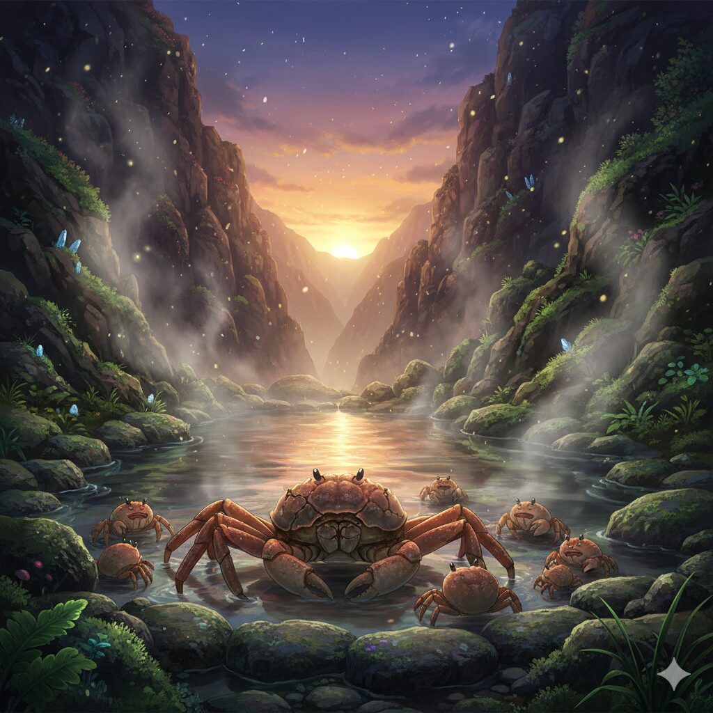 日本という国を深く理解したいなら、侍や忍者、そしてアニメだけでなく、「温泉(Onsen)」の精神性に触れなければなりません。日本人はなぜ、これほどまでに温泉を愛するのか。その答えの一つが、古くから伝わるこの『蟹の湯治(かにのとうじ)』という物語に隠されています。