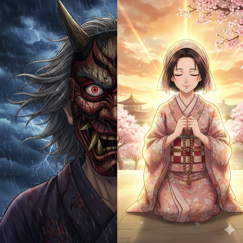 西洋のホラーであれば、鬼になった姑は滅ぼされて終わるかもしれません。しかし、この物語の結末は「許し」と「共生」です。清(被害者)が祈ることによって加害者が救われる。これは、日本仏教における「悪人正機(悪人こそが救われる対象である)」や、和解を重んじる日本的な精神性が色濃く反映されています。
